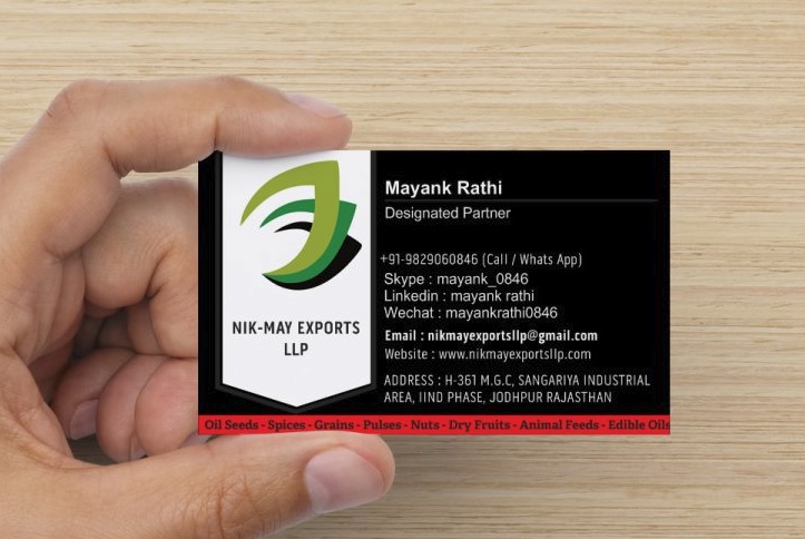 Наш C компания ник-мае экспорт ЛПП Индии занимается в различных сельскохозяйственных продуктов, таких как кукуруза, просо, пшеница, сорго, рис, хлопчатник, кунжут, арахис и т. д. И корма для скота, такие как соевый шрот, семена клещевины, Гуар корма, Гуар Чури и многие виды специй на международном рынке. Мы даем вам гарантию высокого качества продукции, конкурентоспособных цен и отличного складирования. Мы обещаем своевременную доставку, так как у нас есть широкая дистрибьюторская сеть и сильная логистическая поддержка.