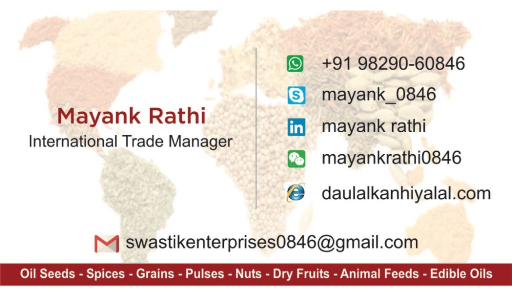NIK-MAY Exports LLP является известным производителем, поставщиком и экспортером масличных семян, специй, зерна, бобовых, злаков, орехов, сухих фруктов, кормов для скота из Раджастана. мы делаем доступными обработанные и упакованные в аккуратных и гигиенических условиях. Покупатели могут свободно размещать оптом